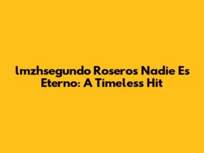 Lmzhsegundo Rosero's Nadie Es Eterno: A Timeless Hit