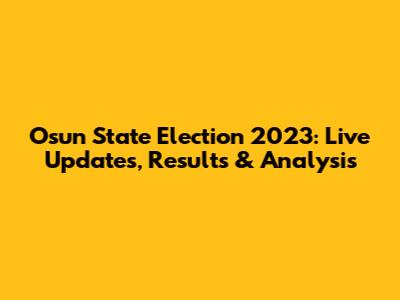 Osun State Election 2023: Live Updates, Results & Analysis