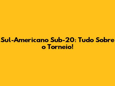 Sul-Americano Sub-20: Tudo Sobre O Torneio!